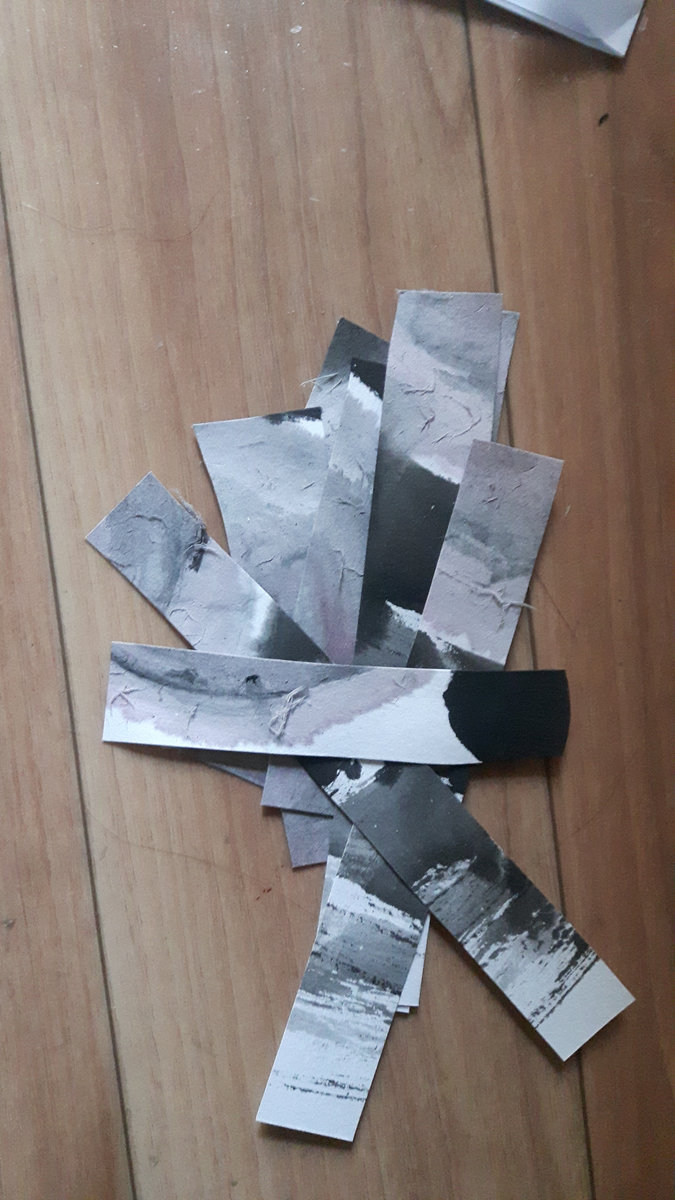 Home made CDr, woodcut printed cover art, ink painted material disintegration test strip, CD.